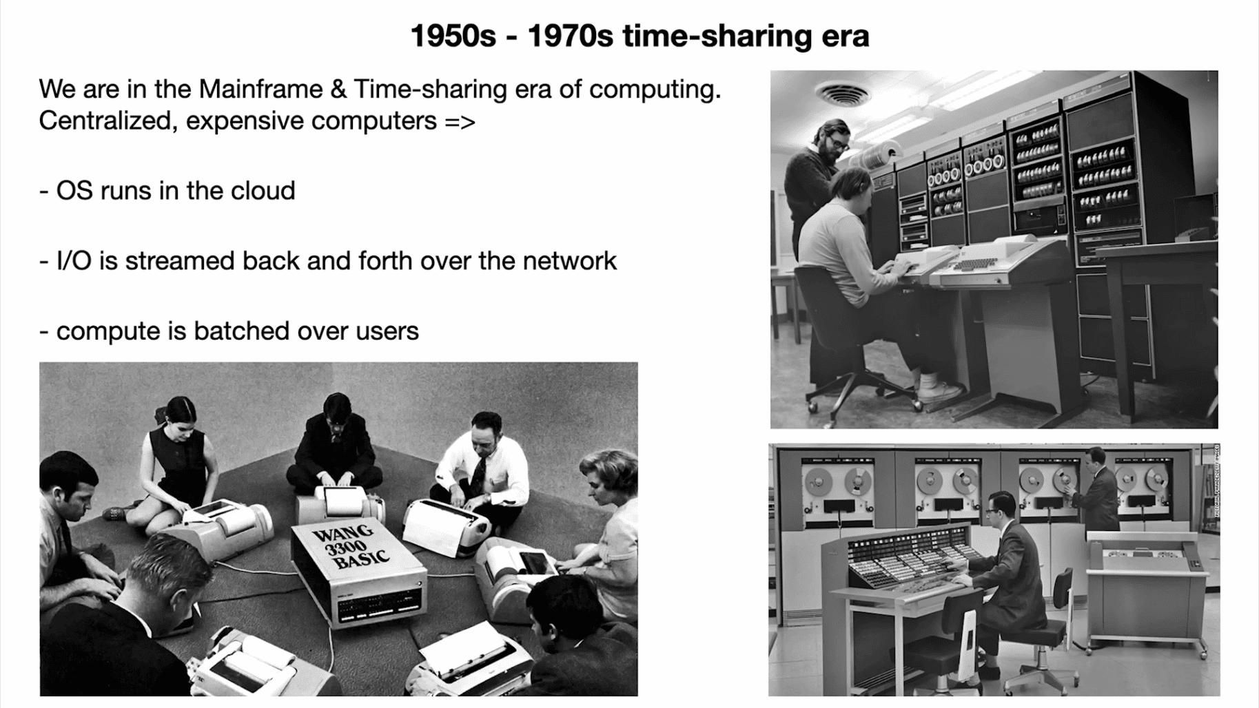 This is very much what computers used to look like during this time. The operating systems were in the cloud. Everything was streamed around, and there was batching. So the personal computing revolution hasn't happened yet because it's just not economical. It doesn't make sense. But I think some people are trying.