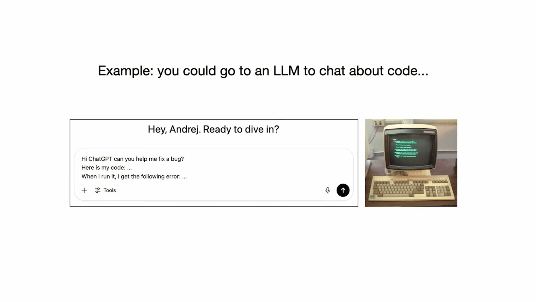 And so I think many of you use Cursor. I do as well. And Cursor is the thing you want instead. You don't want to just directly go to the ChatGPT app. And I think Cursor is a very good example of an early LLM app that has a bunch of properties that I think are useful across all the LLM apps.