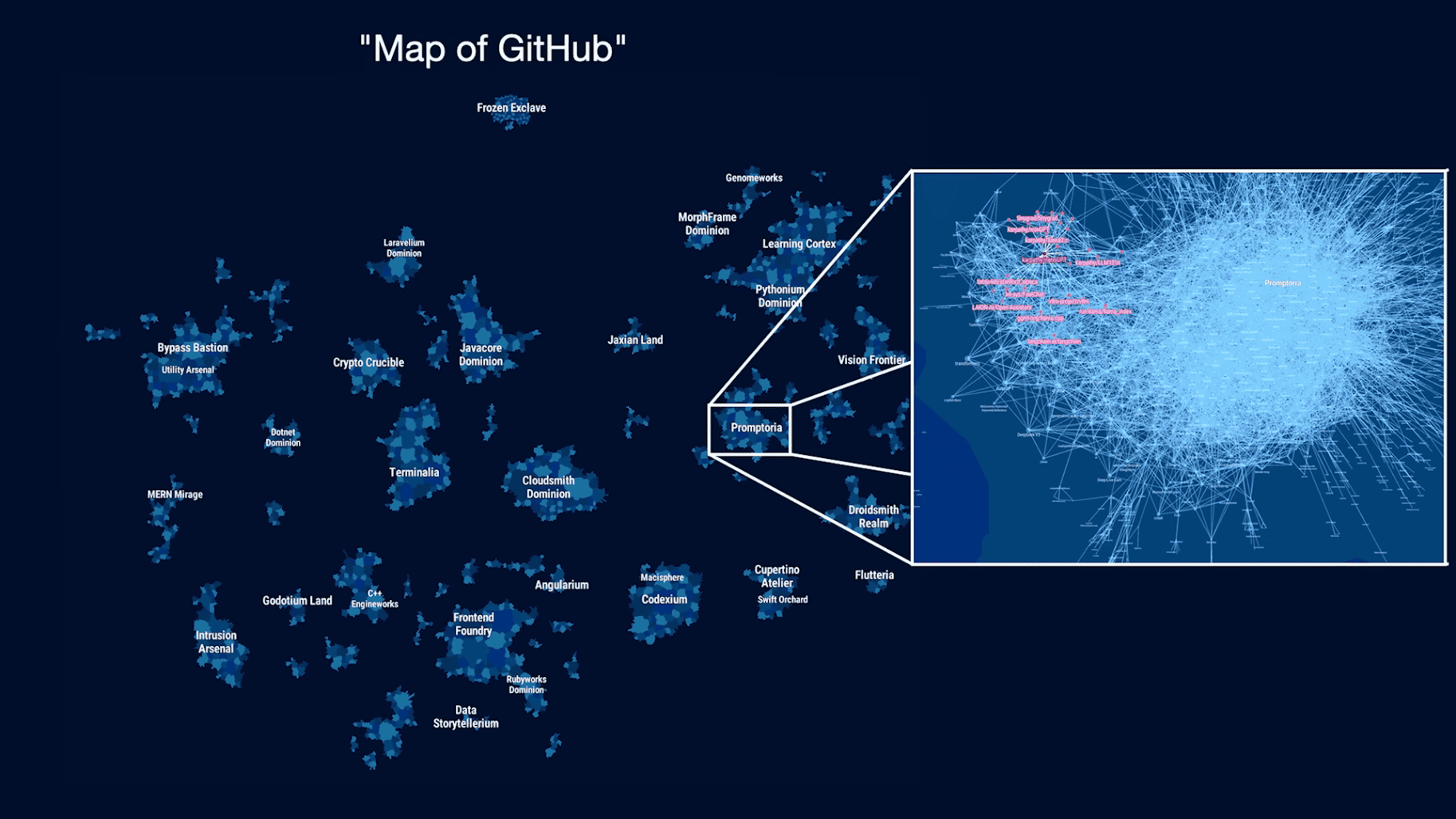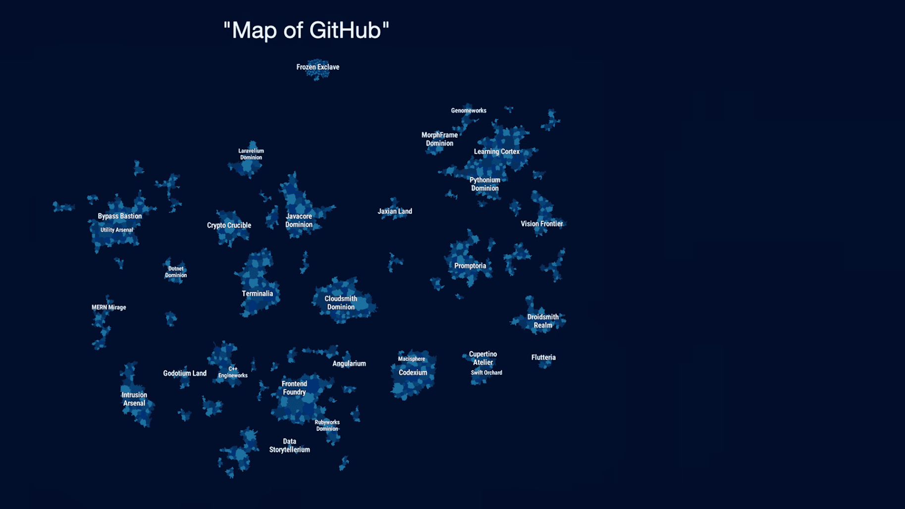 Let's take a look at the realm of software. If we think of this as the map of software, this is a really cool tool called "Map of GitHub." This is all the software that's written. These are instructions to the computer for carrying out tasks in the digital space.